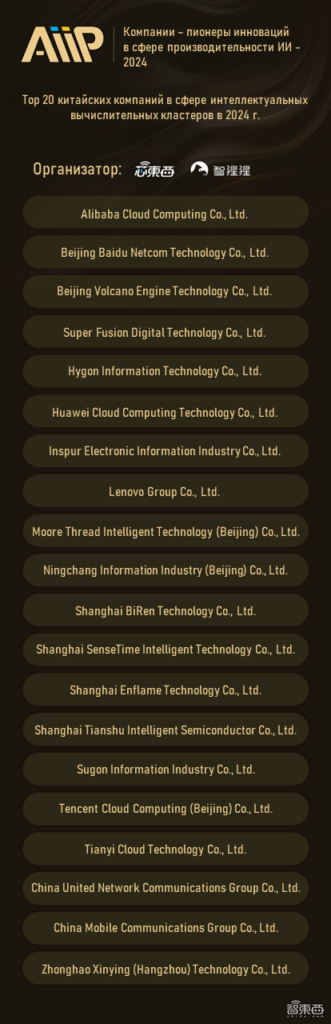 Список «Top 20 китайских компаний в сфере интеллектуальных вычислительных кластеров в 2024 г.», посвящен китайским компаниям, которые участвуют в строительстве и модернизации интеллектуальных вычислительных кластеров страны, устанавливают эталонные примеры для интеллектуальных вычислительных кластерных решений и играют роль в технологическом лидерстве и бизнес-инновациях.