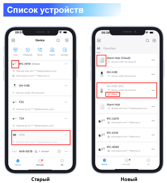 - Когда устройства находятся в автономном режиме, в дополнение к серому отображению карточки устройства добавляется красный значок автономного режима для лучшей видимости.