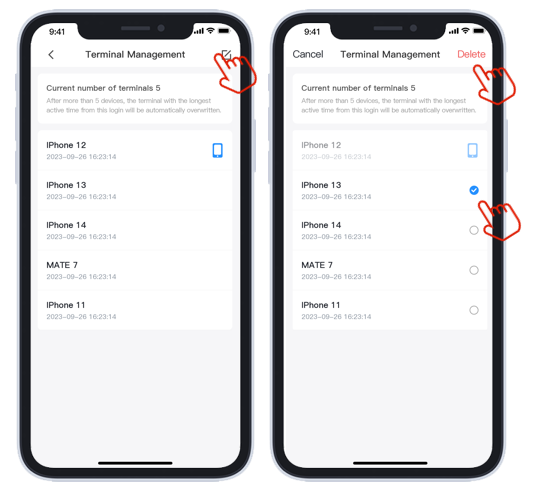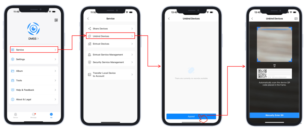 - Первый телефон, вошедший в учетную запись DMSS, является терминалом администратора и может управлять всеми остальными смартфонами, например, просматривать подробную информацию и удалять их.