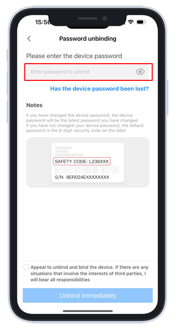 - Если система подтвердит правильность пароля устройства, устройство будет отвязано автоматически.