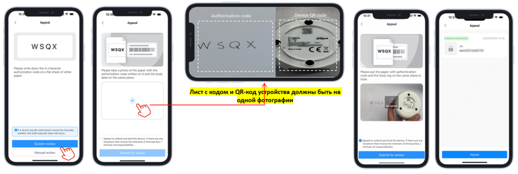- Сделайте фотографию листа с кодом и QR-кода устройства