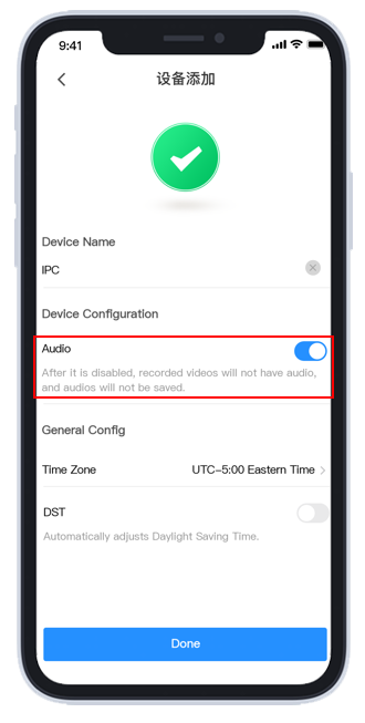 - При добавлении устройства переключатель звука включен по умолчанию.