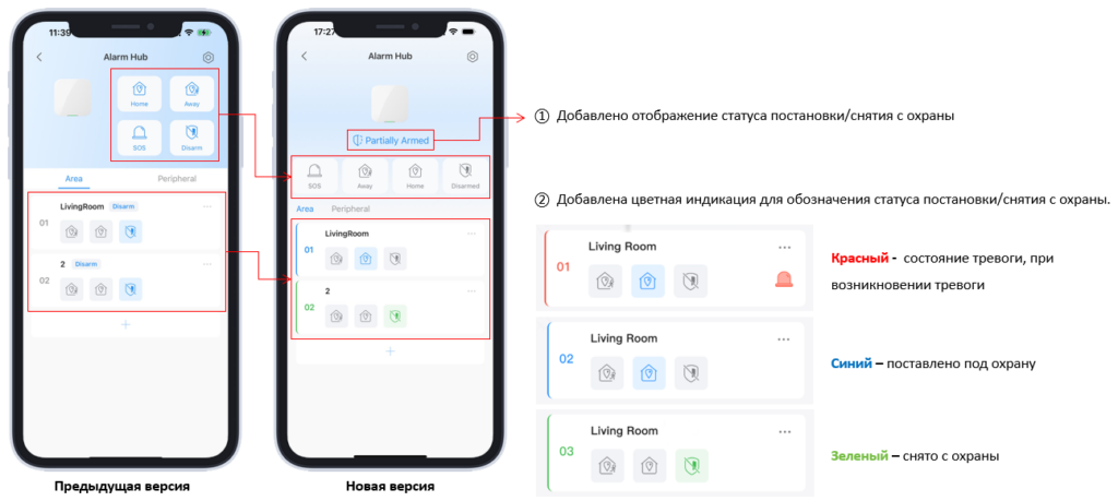 2.2 Оптимизирован дизайн интерфейса домашней страницы хаба сигнализации