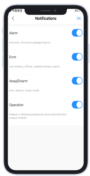 2.2 Настройка типов уведомлений для основной учетной записи хаба сигнализации
