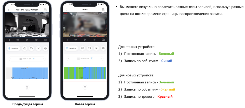 3.4 Поддерживает использование разных цветов для отображения разных типов записей на временной шкале воспроизведения.