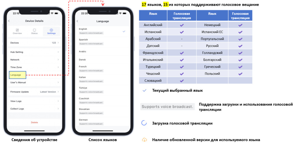 2.9 Добавлено отображение статуса того, доступна ли языковая голосовая трансляция в списке языков концентратора.