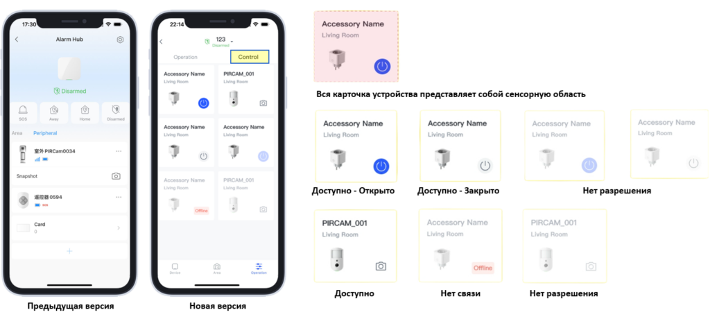 2.1 Оптимизирован дизайн интерфейса домашней страницы хаба сигнализации 2.0.